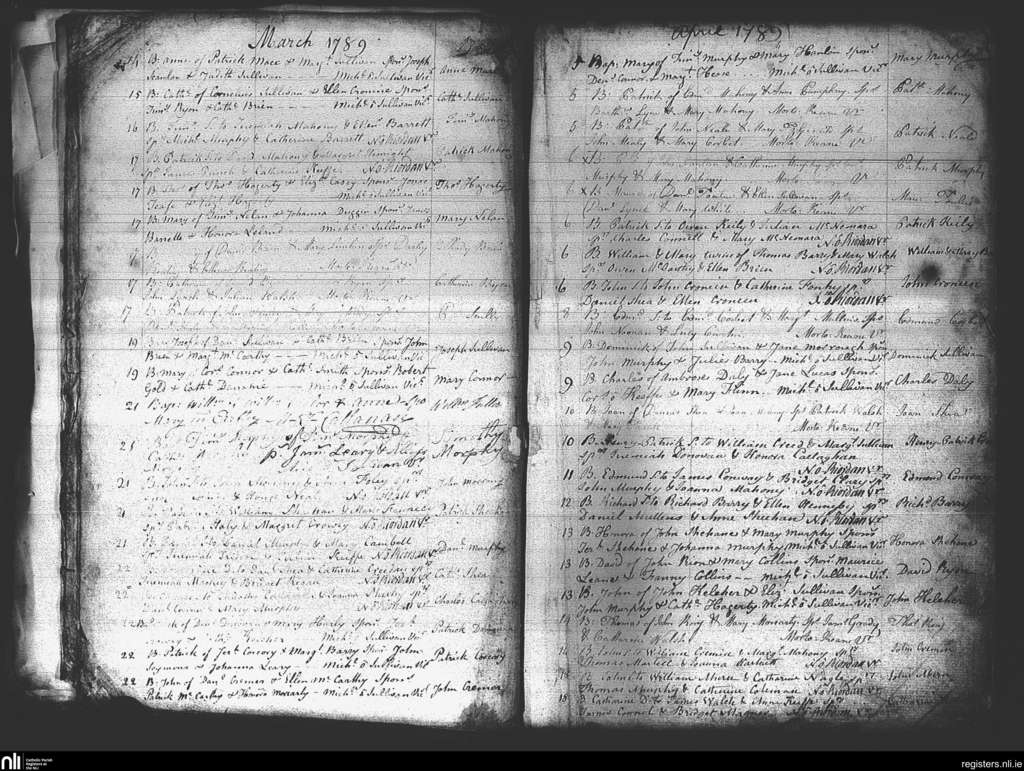 St. Mary's, Cork city; County of Cork; Diocese of Cork and Ross. Baptisms, Mar. 1789 to Apr. 1789
