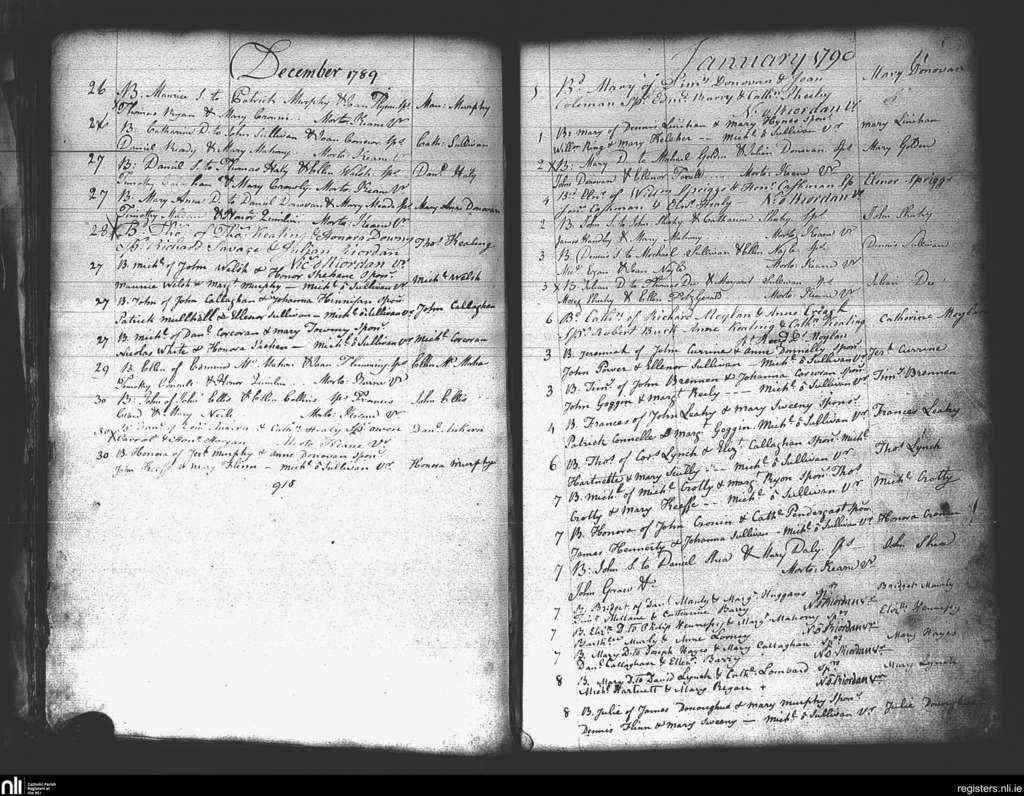 St. Mary's, Cork city; County of Cork; Diocese of Cork and Ross. Baptisms, Dec. 1789 to Jan. 1790