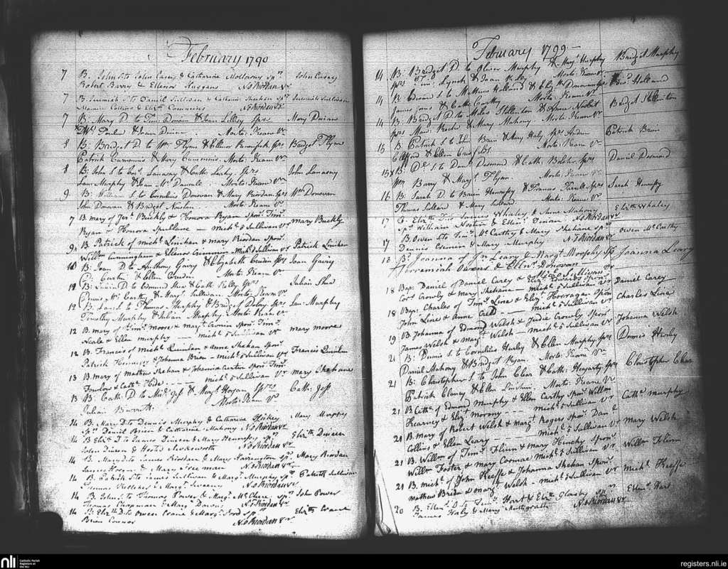 St. Mary's, Cork city; County of Cork; Diocese of Cork and Ross. Baptisms, Feb. 1790