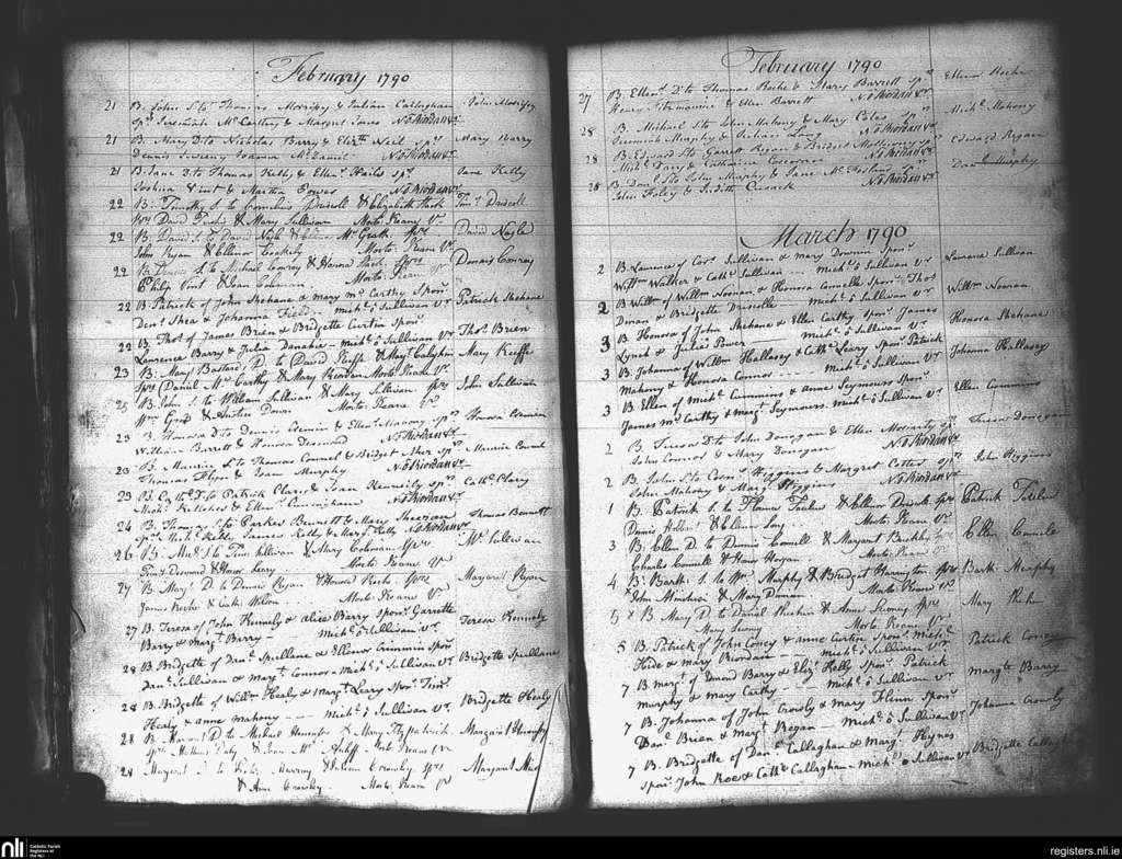 St. Mary's, Cork city; County of Cork; Diocese of Cork and Ross. Baptisms, Feb. 1790 to Mar. 1790