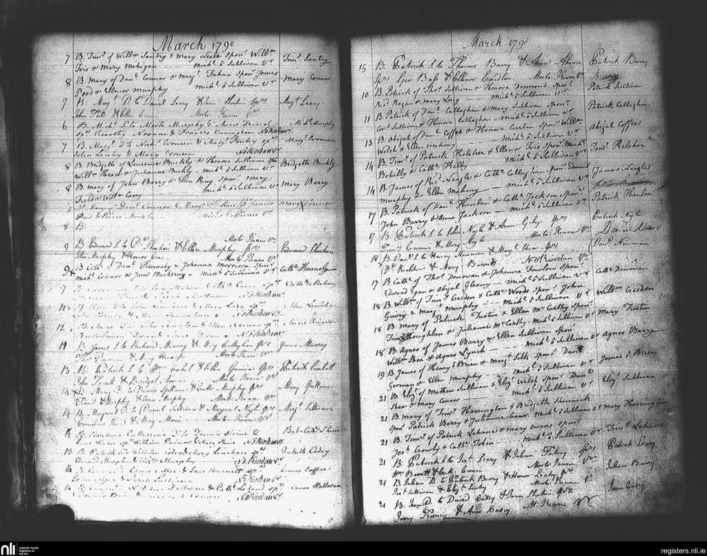 St. Mary's, Cork city; County of Cork; Diocese of Cork and Ross. Baptisms, Mar. 1790