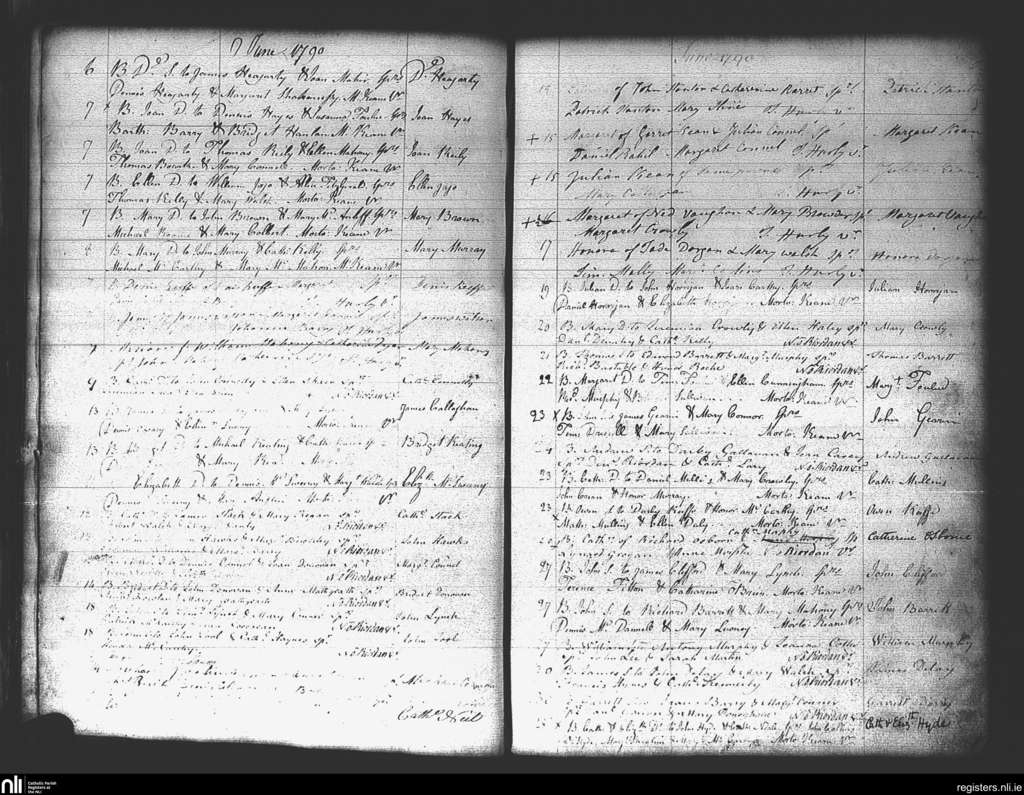 St. Mary's, Cork city; County of Cork; Diocese of Cork and Ross. Baptisms, June 1790