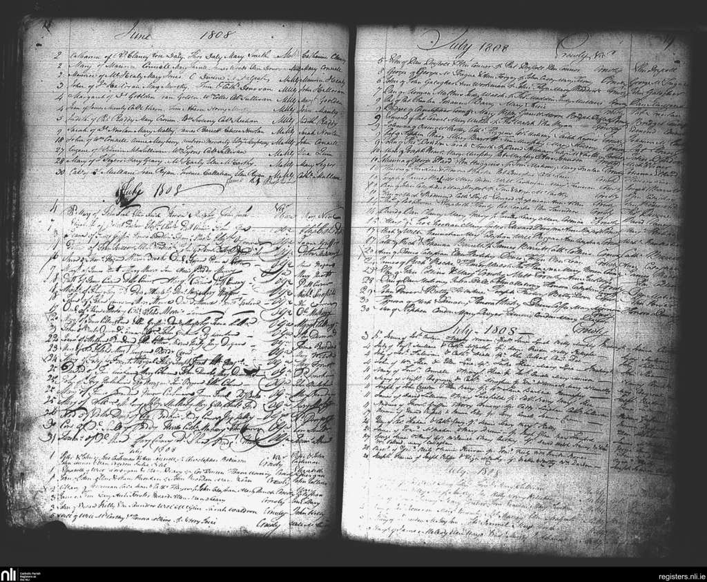 St. Mary's, Cork city; County of Cork; Diocese of Cork and Ross. Baptisms, June 1808 to July 1808