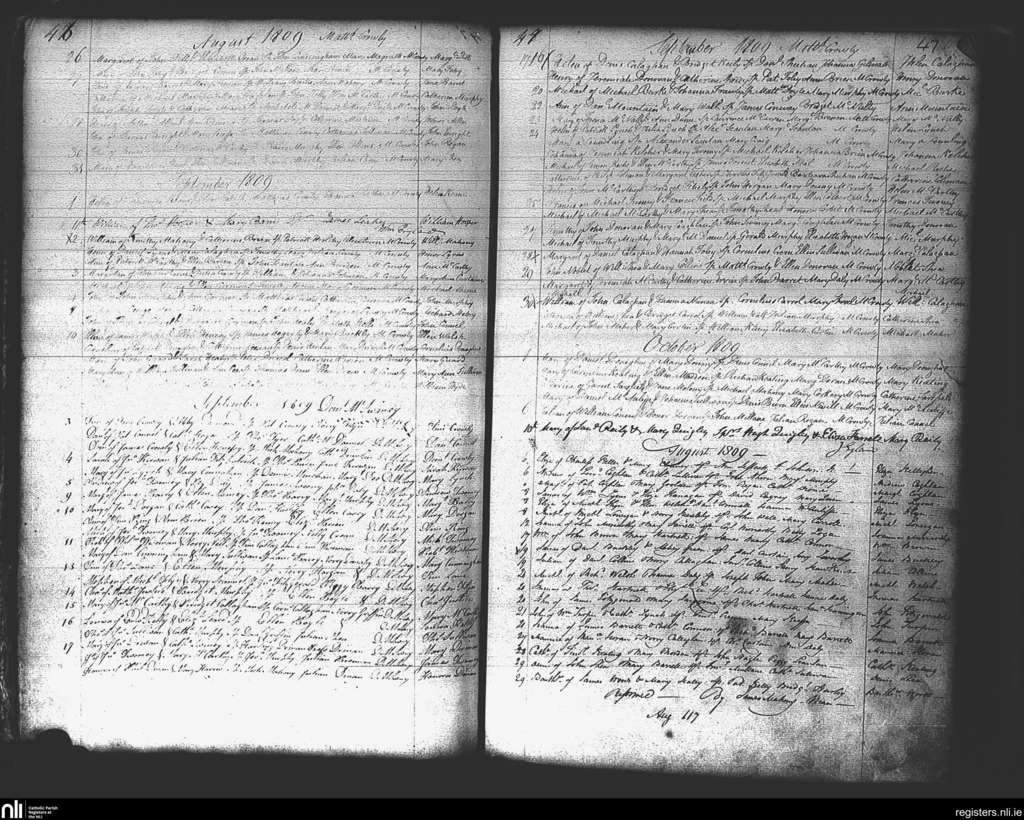 St. Mary's, Cork city; County of Cork; Diocese of Cork and Ross. Baptisms, Aug. 1809 to Oct. 1809