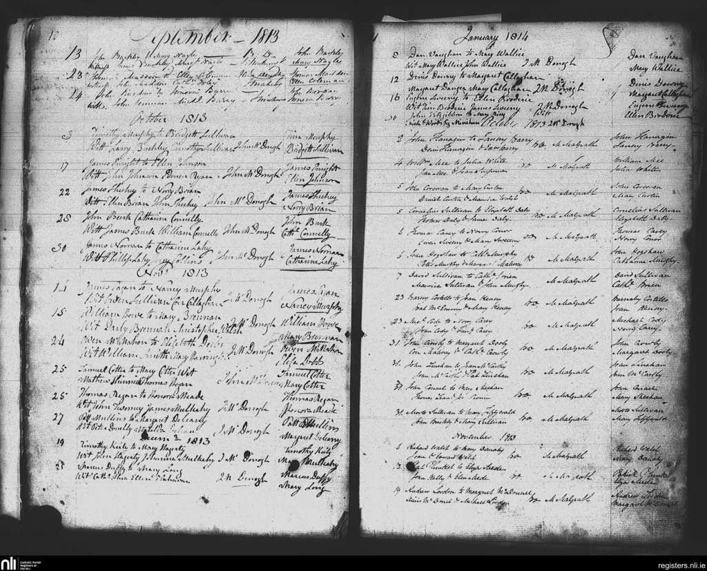 St. Mary's, Cork city; County of Cork; Diocese of Cork and Ross. Marriages, Sep. 1813 to Jan. 1814