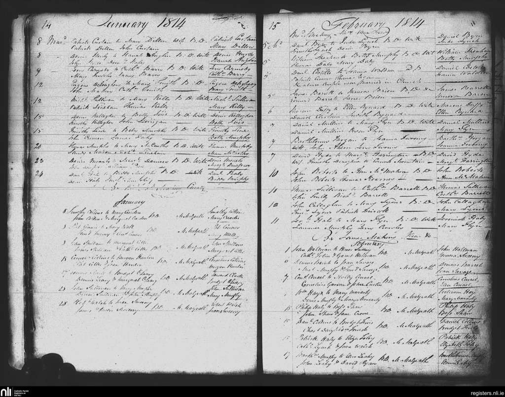 St. Mary's, Cork city; County of Cork; Diocese of Cork and Ross. Marriages, Jan. 1814 to Feb. 1814