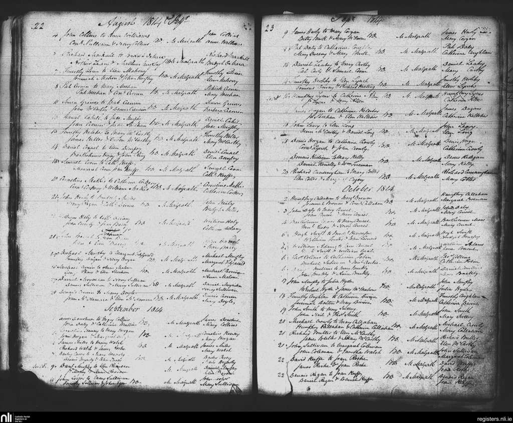 St. Mary's, Cork city; County of Cork; Diocese of Cork and Ross. Marriages, Aug. 1814 to Oct. 1814
