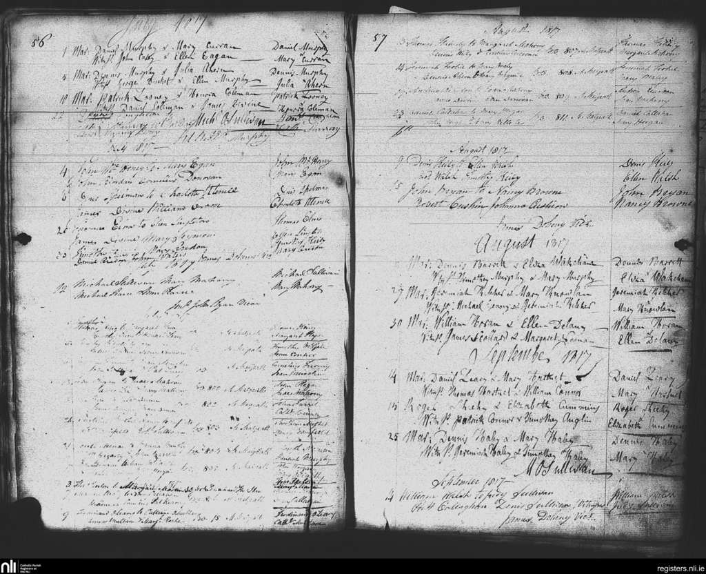 St. Mary's, Cork city; County of Cork; Diocese of Cork and Ross. Marriages, July 1817 to Sep. 1817
