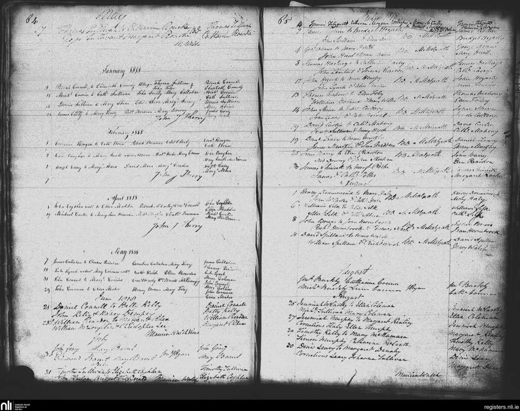 St. Mary's, Cork city; County of Cork; Diocese of Cork and Ross. Marriages, Jan. 1818 to Aug. 1818