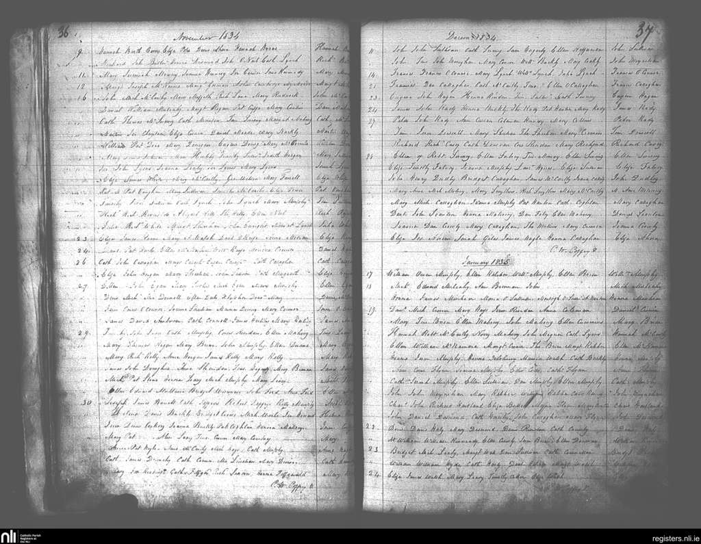 St. Mary's, Cork city; County of Cork; Diocese of Cork and Ross. Baptisms, Nov. 1834 to Jan. 1835