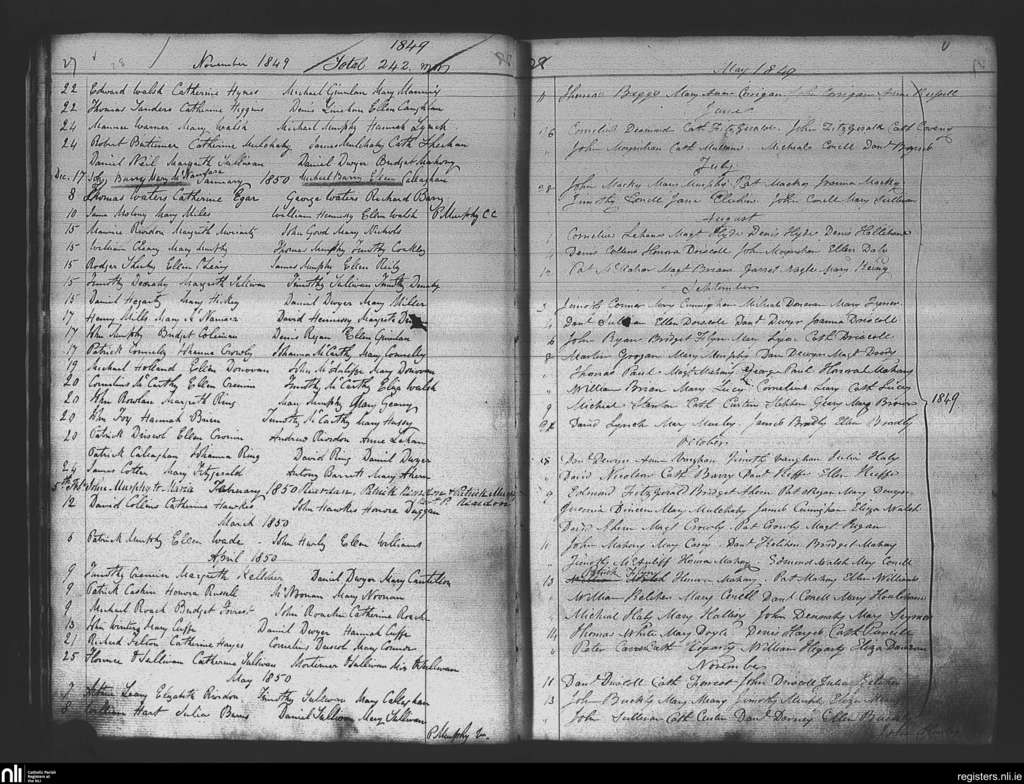 St. Mary's, Cork city; County of Cork; Diocese of Cork and Ross. Marriages, May 1849 to May 1850