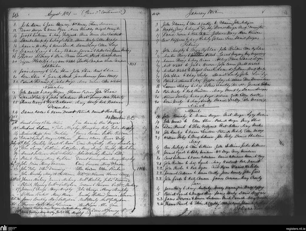 St. Mary's, Cork city; County of Cork; Diocese of Cork and Ross. Marriages, June 1851 to June 1852