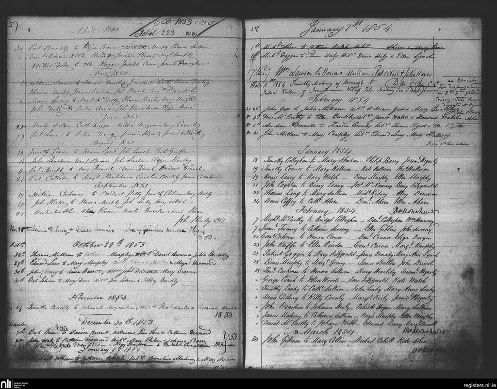 St. Mary's, Cork city; County of Cork; Diocese of Cork and Ross. Marriages, Apr. 1853 to Mar. 1854