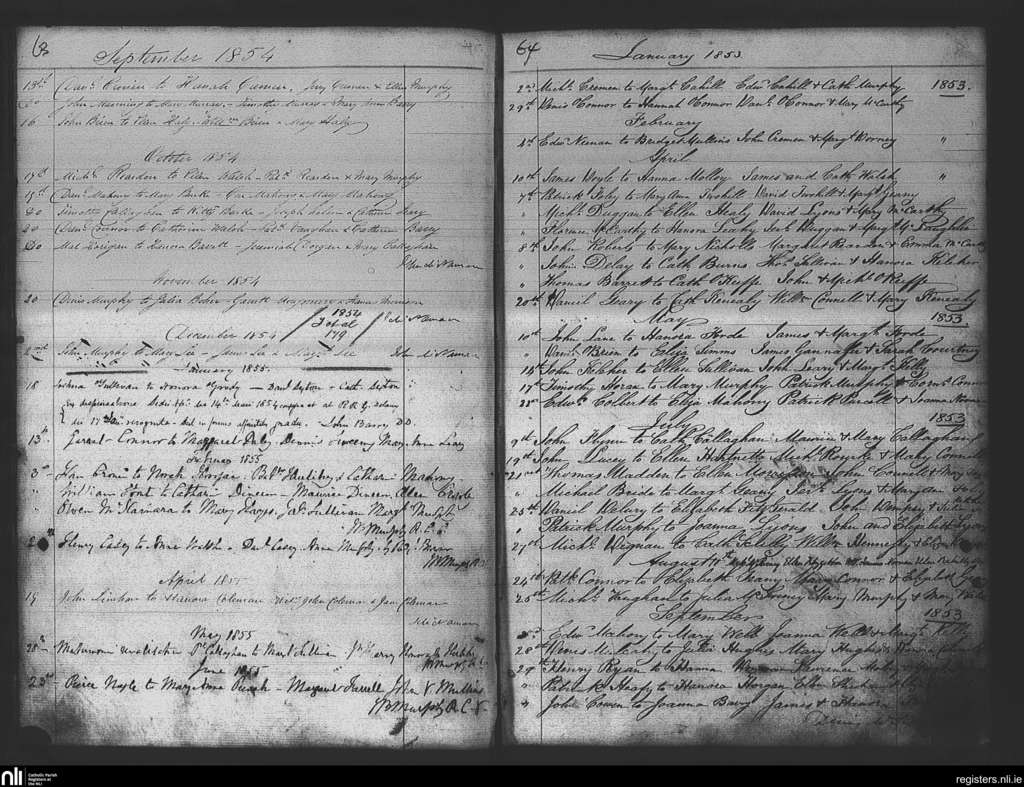 St. Mary's, Cork city; County of Cork; Diocese of Cork and Ross. Marriages, Jan. 1853 to June 1855