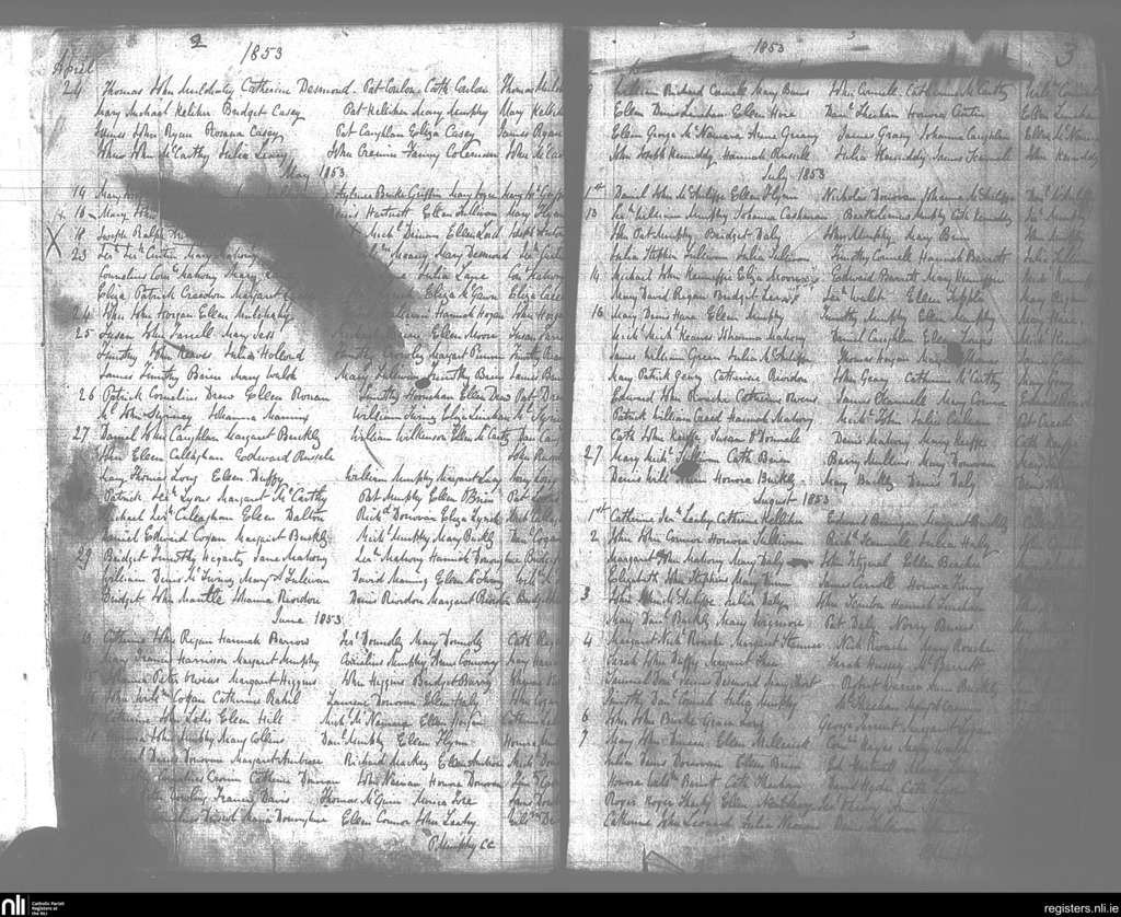 St. Mary's, Cork city; County of Cork; Diocese of Cork and Ross. Baptisms, Apr. 1853 to Aug. 1853