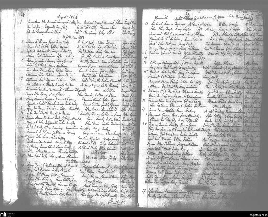 St. Mary's, Cork city; County of Cork; Diocese of Cork and Ross. Baptisms, Aug. 1853 to Dec. 1853