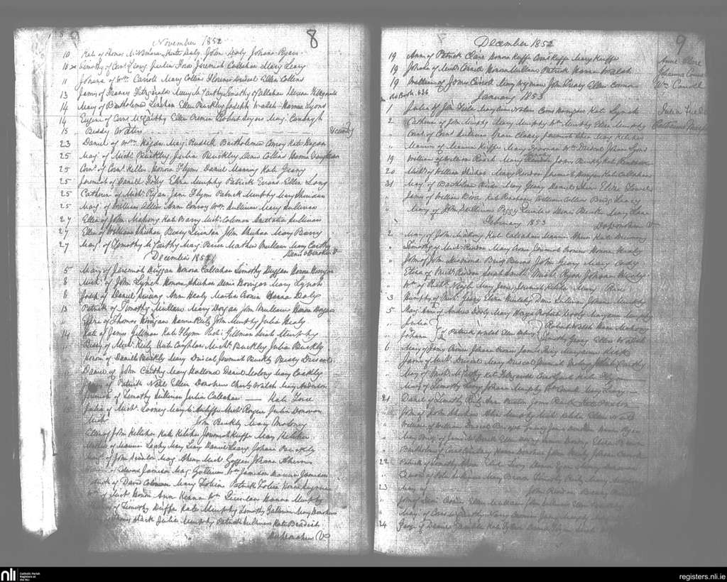 St. Mary's, Cork city; County of Cork; Diocese of Cork and Ross. Baptisms, Nov. 1852 to Feb. 1853