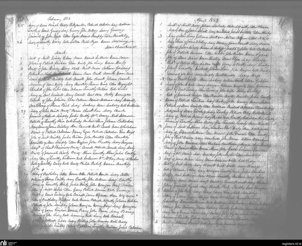 St. Mary's, Cork city; County of Cork; Diocese of Cork and Ross. Baptisms, Feb. 1853 to Apr. 1853