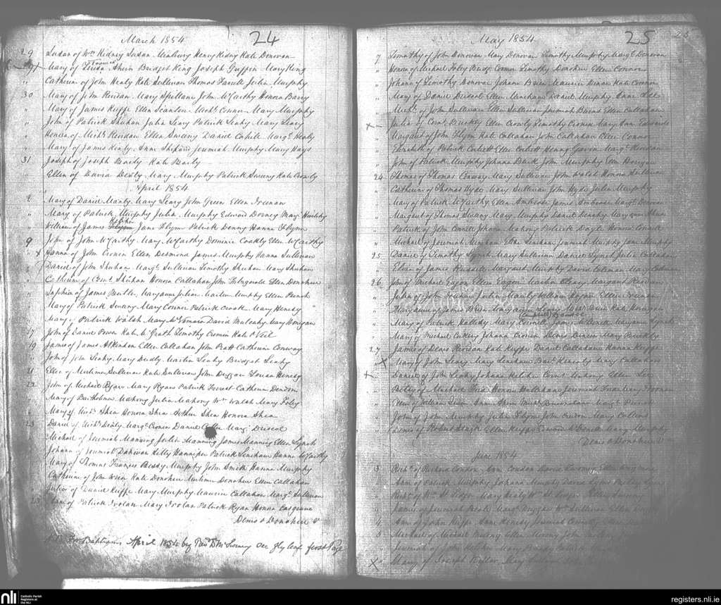 St. Mary's, Cork city; County of Cork; Diocese of Cork and Ross. Baptisms, Mar. 1854 to June 1854