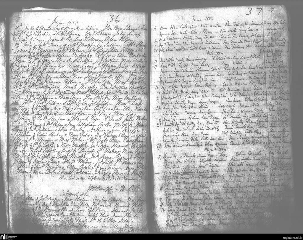 St. Mary's, Cork city; County of Cork; Diocese of Cork and Ross. Baptisms, June 1854 to Aug. 1855