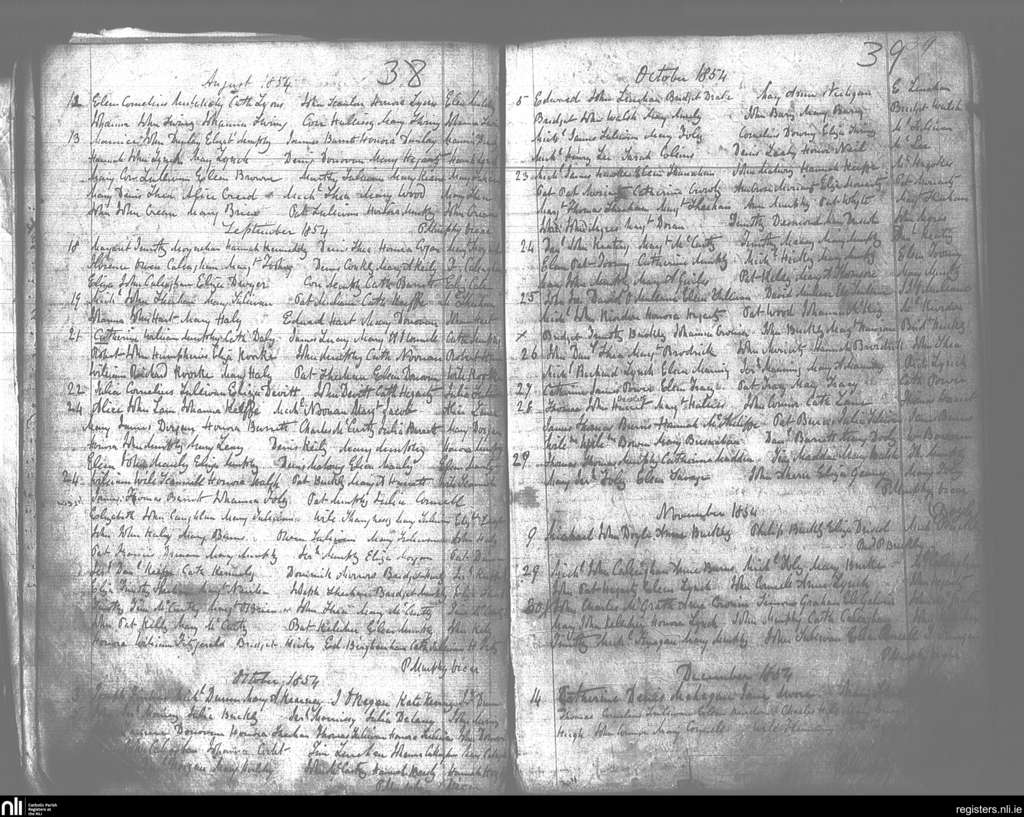 St. Mary's, Cork city; County of Cork; Diocese of Cork and Ross. Baptisms, Aug. 1854 to Dec. 1854