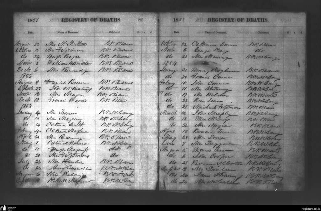 Downpatrick; County of Down; Diocese of Down and Connor. Deaths, Aug. 1851 to Sep. 1854