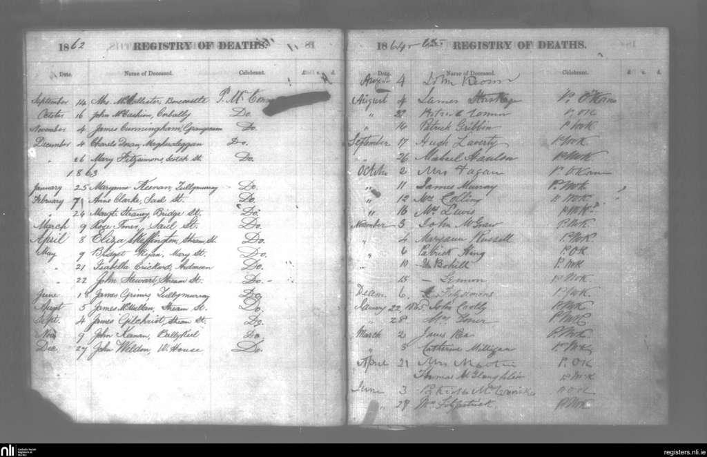 Downpatrick; County of Down; Diocese of Down and Connor. Deaths, Sep. 1862 to June 1865
