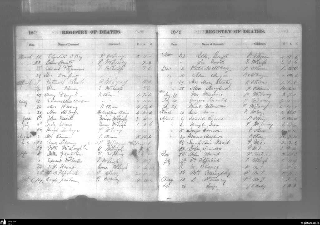 Downpatrick; County of Down; Diocese of Down and Connor. Deaths, Mar. 1879 to Sep. 1880