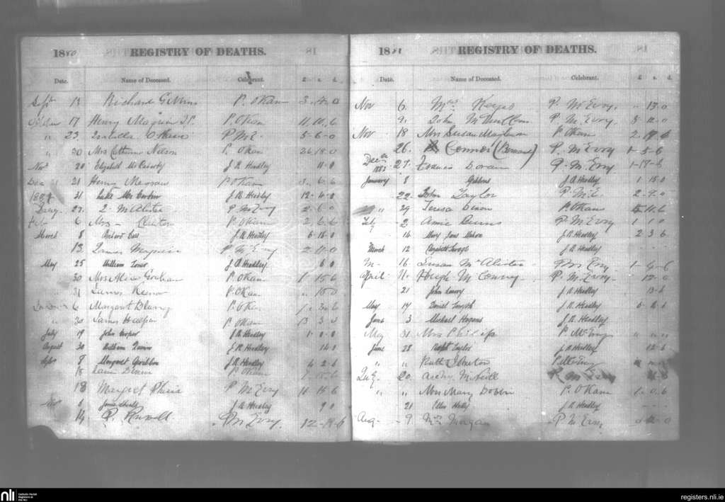 Downpatrick; County of Down; Diocese of Down and Connor. Deaths, Sep. 1880 to Aug. 1882