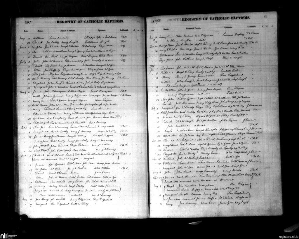 Downpatrick; County of Down; Diocese of Down and Connor. Baptisms, May 1873 to May 1874