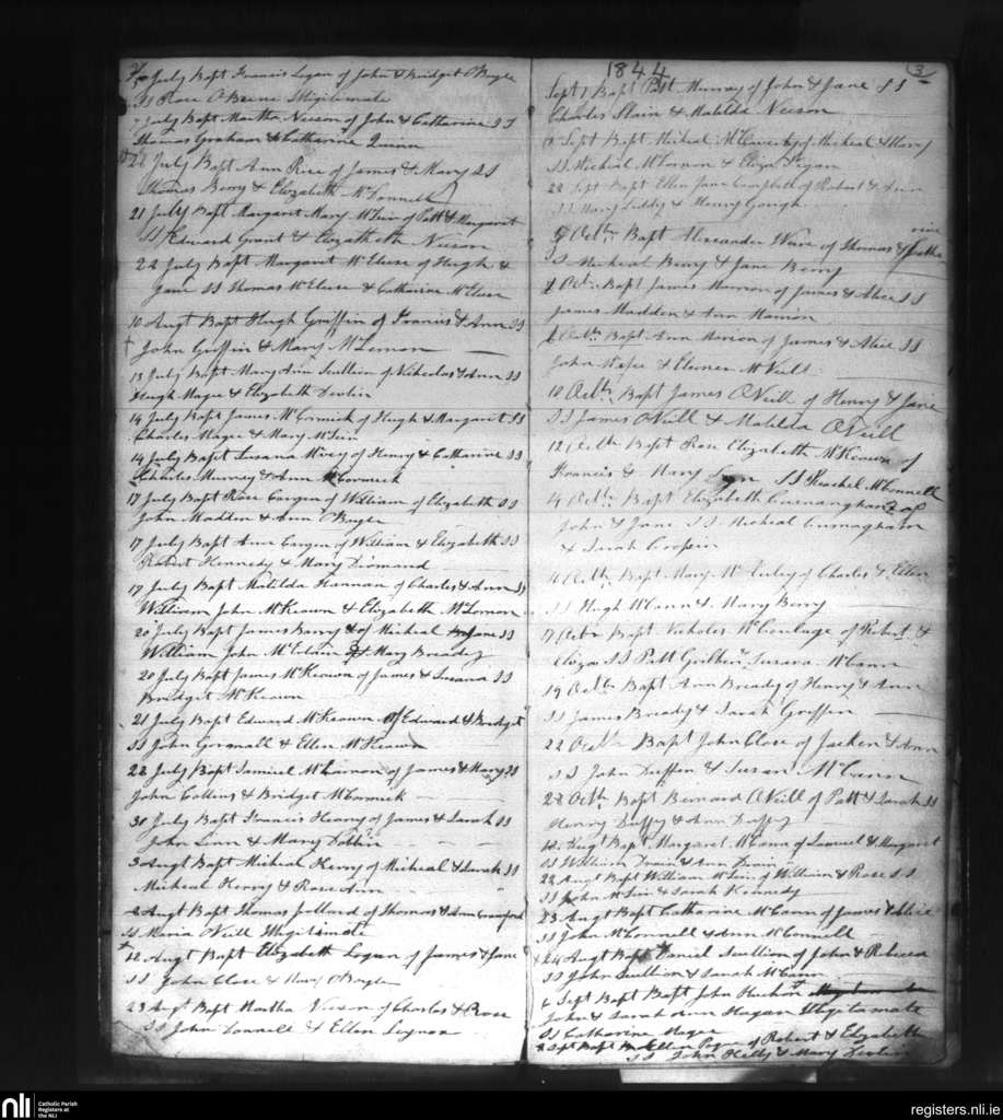 Dunean; County of Antrim; Diocese of Down and Connor. Baptisms, July 1844 to Oct. 1844