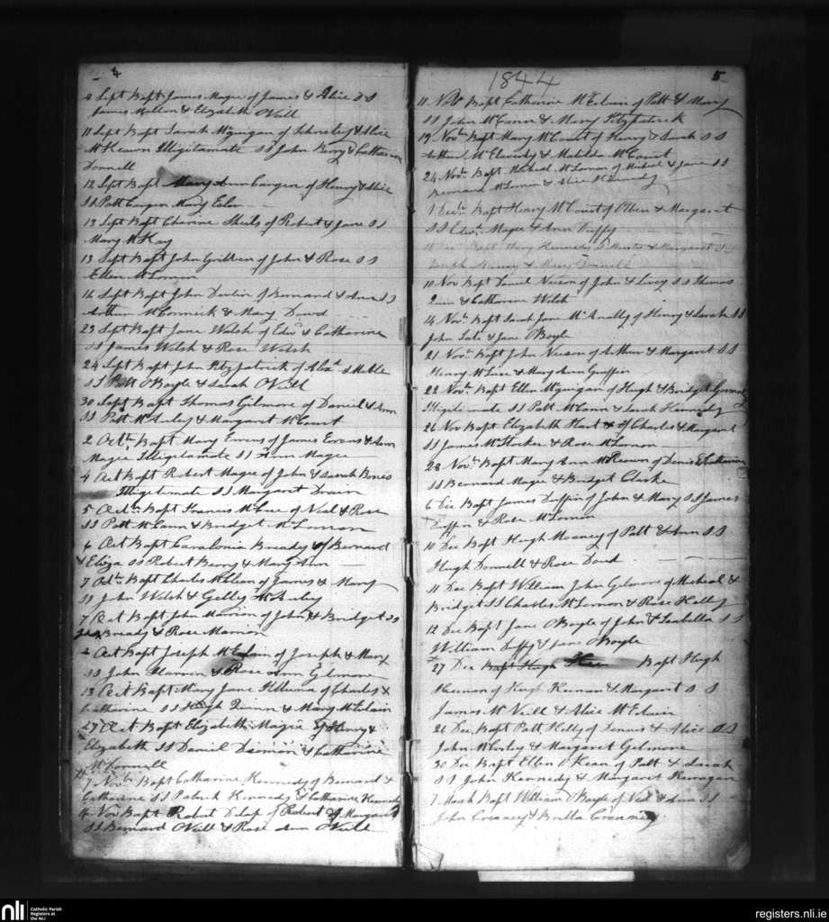 Dunean; County of Antrim; Diocese of Down and Connor. Baptisms, Sep. 1844 to Mar. 1845