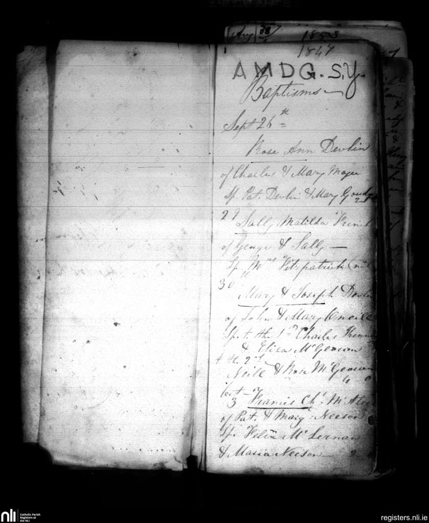 Dunean; County of Antrim; Diocese of Down and Connor. Baptisms, Sep. 1847 to Oct. 1847