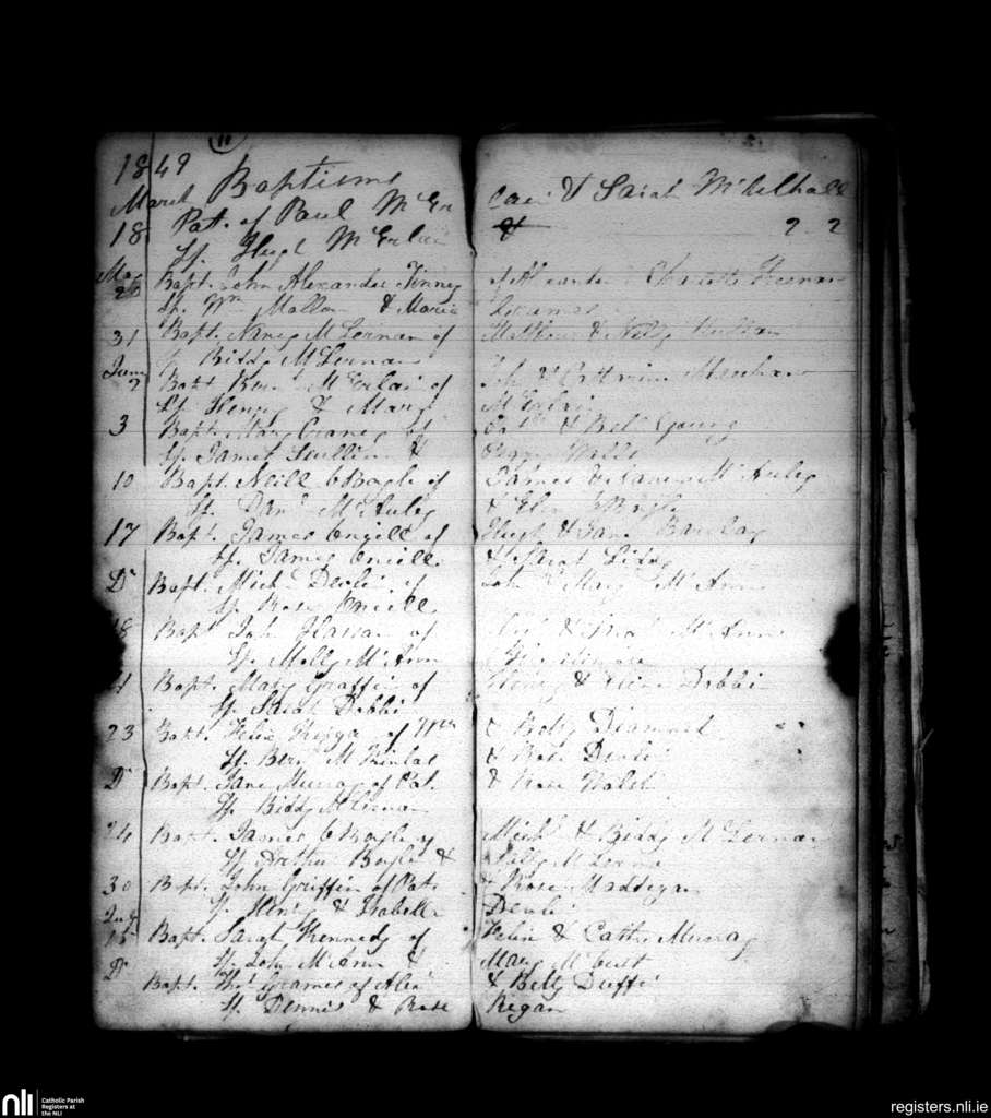 Dunean; County of Antrim; Diocese of Down and Connor. Baptisms, Mar. 1849 to July 1849