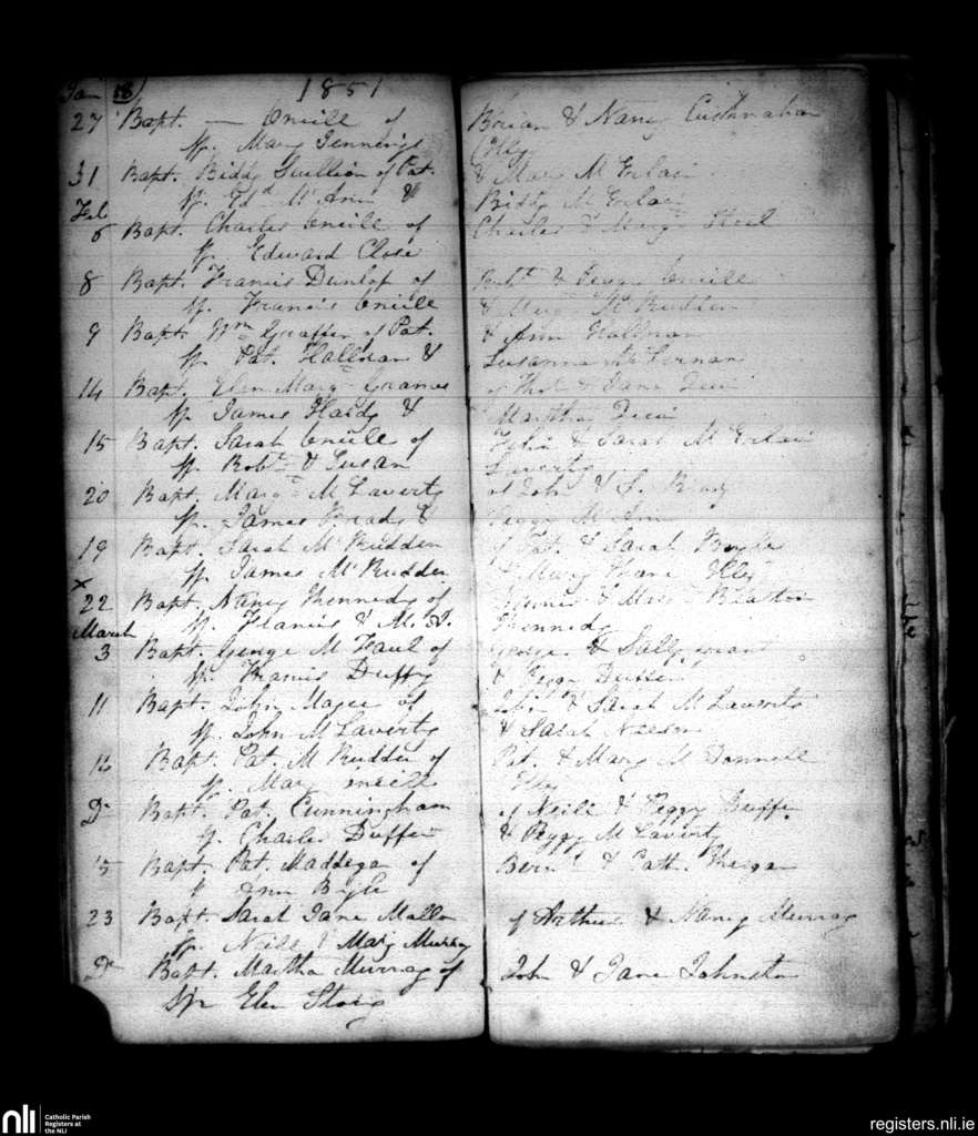 Dunean; County of Antrim; Diocese of Down and Connor. Baptisms, Jan. 1851 to Mar. 1851