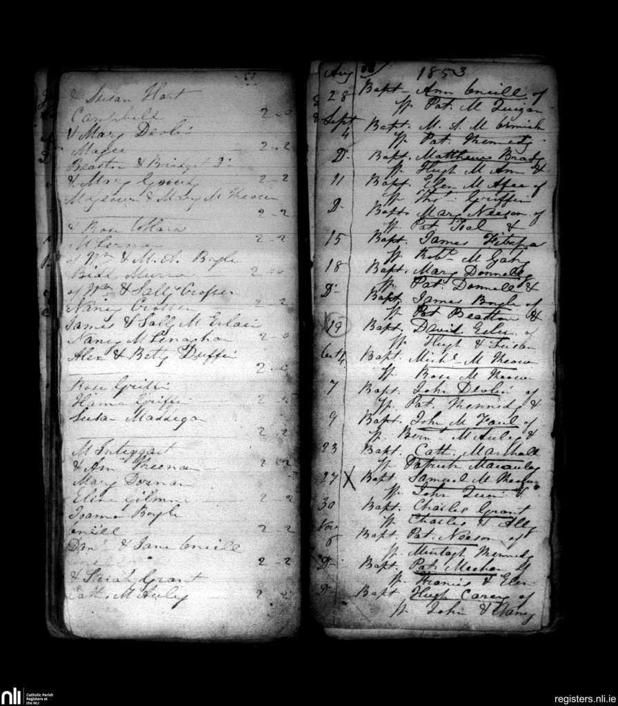 Dunean; County of Antrim; Diocese of Down and Connor. Baptisms, Aug. 1853 to Nov. 1853
