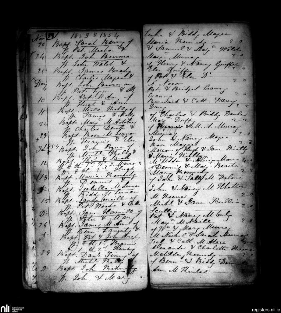 Dunean; County of Antrim; Diocese of Down and Connor. Baptisms, Nov. 1853 to Jan. 1854