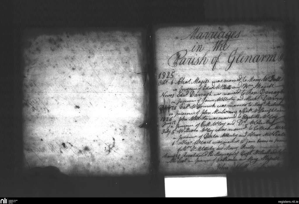 Glenarm; County of Antrim; Diocese of Down and Connor. Marriages, Oct. 1825 to Mar. 1826