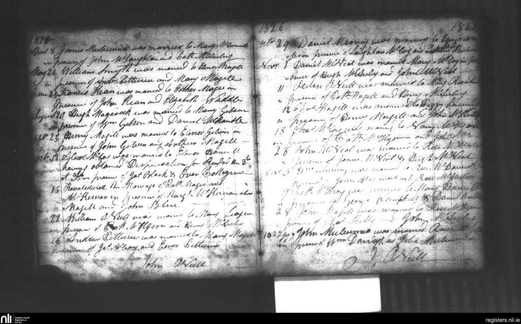 Glenarm; County of Antrim; Diocese of Down and Connor. Marriages, Apr. 1826 to Jan. 1827