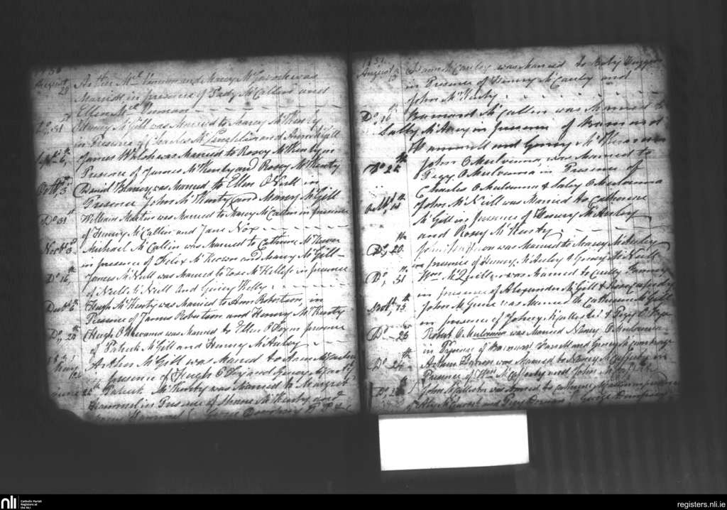 Glenarm; County of Antrim; Diocese of Down and Connor. Marriages, Aug. 1830 to Nov. 1831
