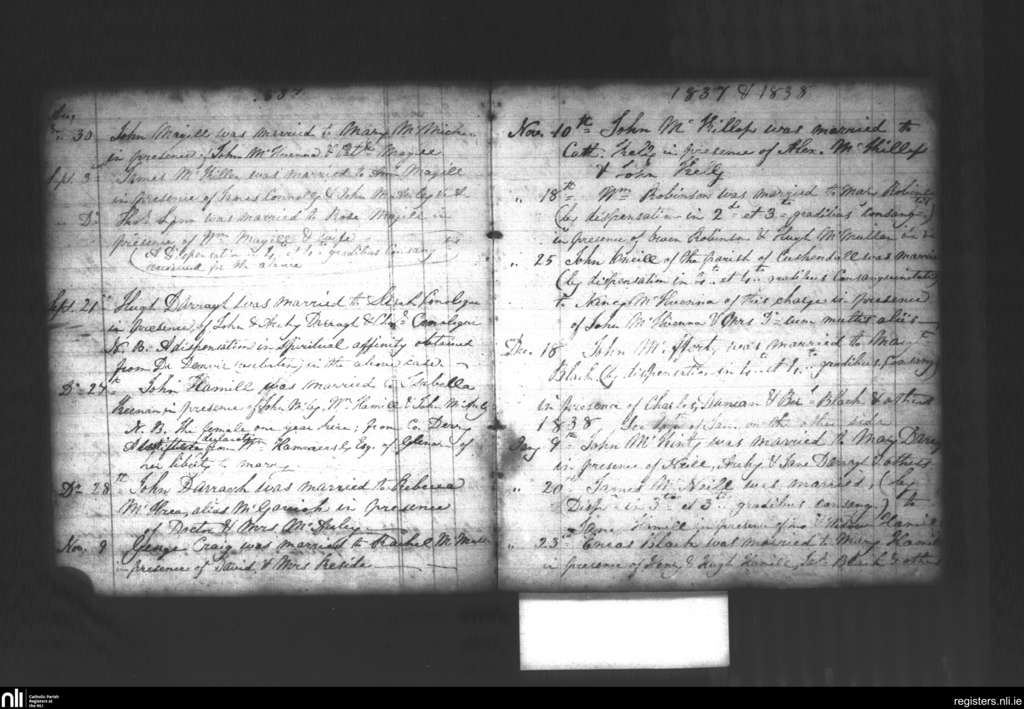 Glenarm; County of Antrim; Diocese of Down and Connor. Marriages, Aug. 1837 to Jan. 1838