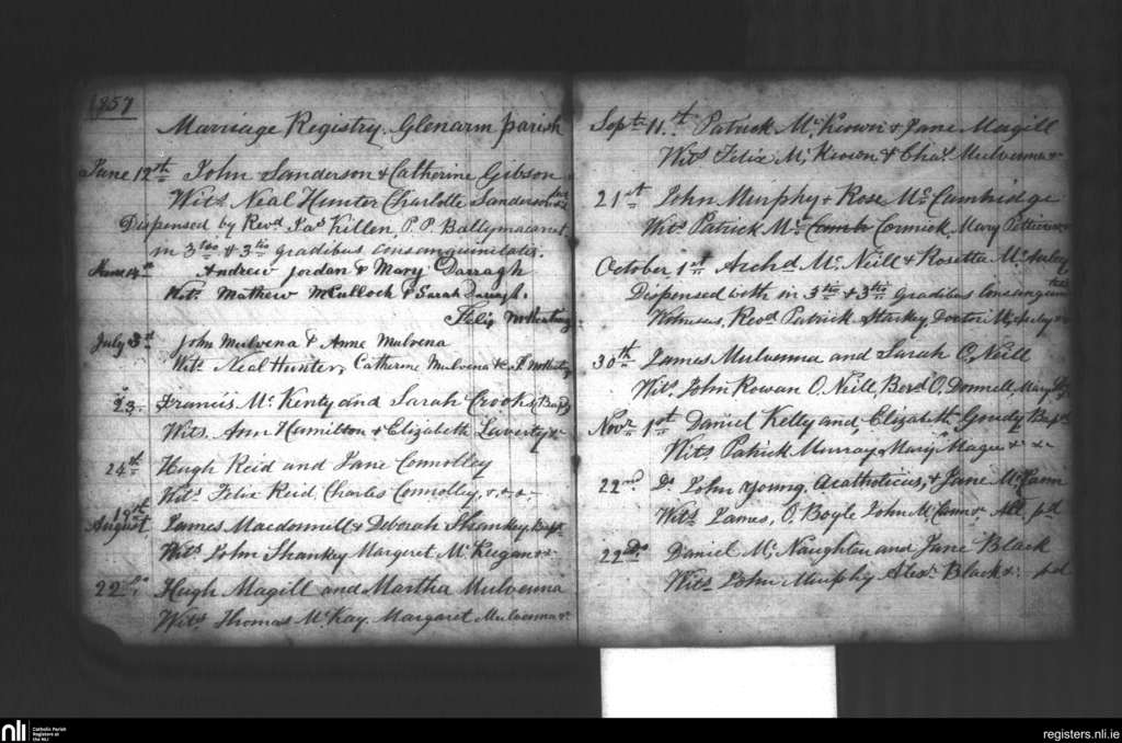 Glenarm; County of Antrim; Diocese of Down and Connor. Marriages, June 1857 to Nov. 1857
