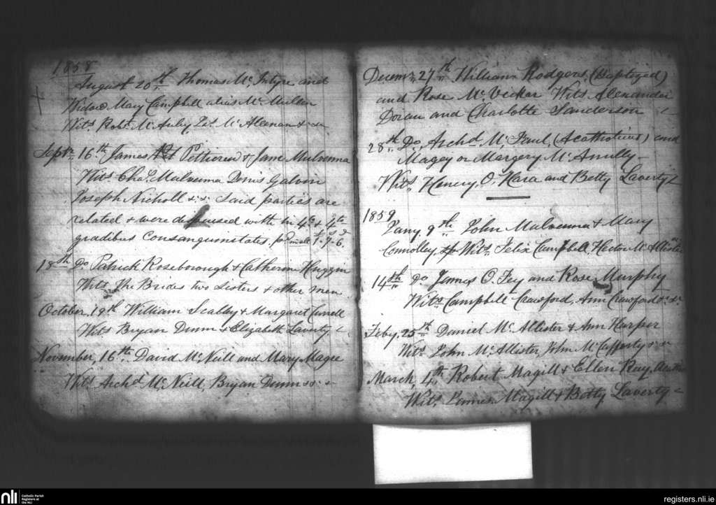 Glenarm; County of Antrim; Diocese of Down and Connor. Marriages, Aug. 1858 to Mar. 1859