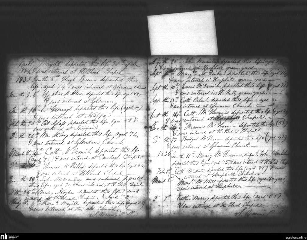 Glenarm; County of Antrim; Diocese of Down and Connor. Deaths, Aug. 1833 to Mar. 1836