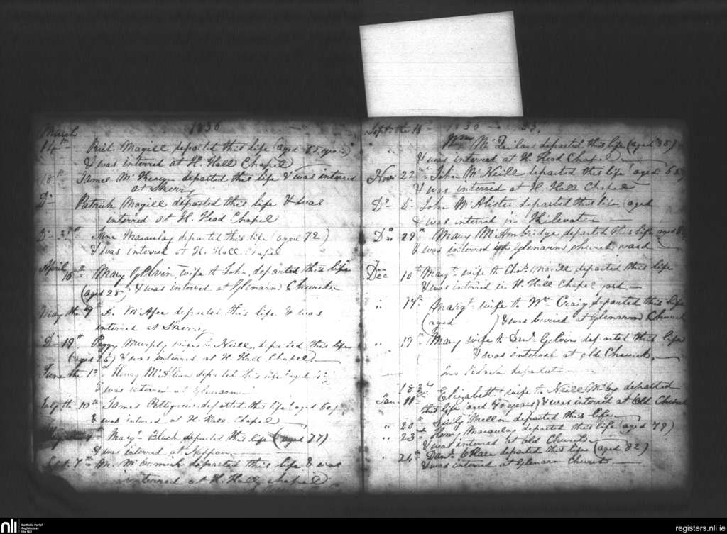 Glenarm; County of Antrim; Diocese of Down and Connor. Deaths, Mar. 1836 to Jan. 1837