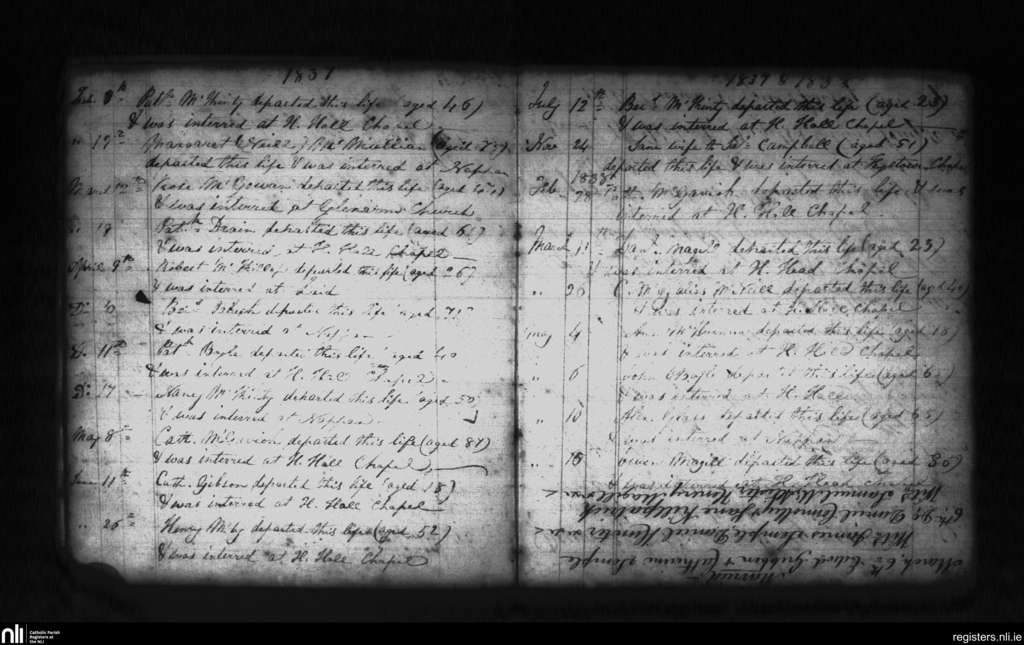 Glenarm; County of Antrim; Diocese of Down and Connor. Deaths, Feb. 1837 to Mar. 1839