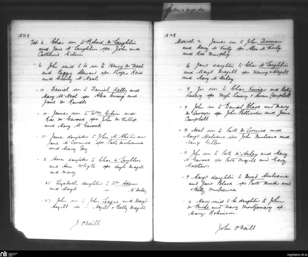 Glenarm; County of Antrim; Diocese of Down and Connor. Baptisms, Feb. 1828 to Mar. 1828