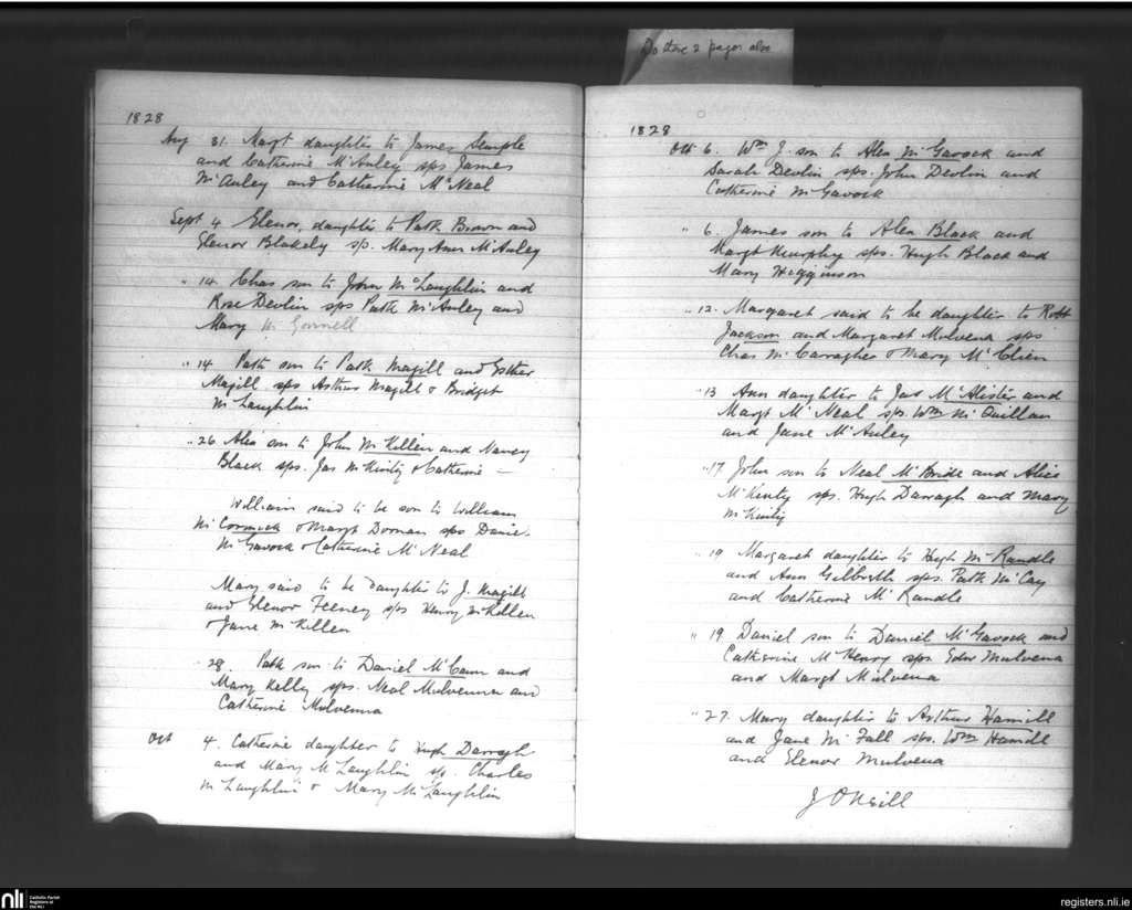 Glenarm; County of Antrim; Diocese of Down and Connor. Baptisms, Aug. 1828 to Oct. 1828