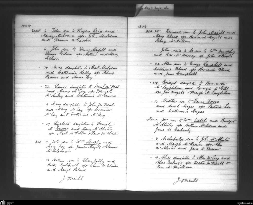 Glenarm; County of Antrim; Diocese of Down and Connor. Baptisms, Sep. 1829 to Nov. 1829