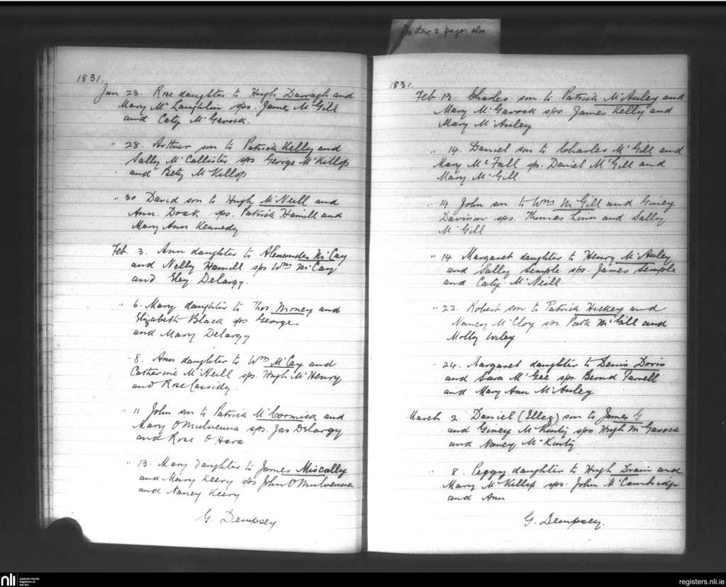 Glenarm; County of Antrim; Diocese of Down and Connor. Baptisms, Jan. 1831 to Mar. 1831